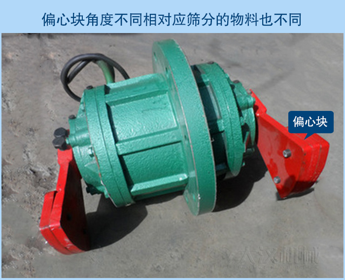 2、臥式振動電機通過改變偏心塊夾角的大小來調(diào)節(jié)偏心塊,夾角越大激振力則越小,反之夾角越小激振力越大,兩塊偏心塊重合時激振力。